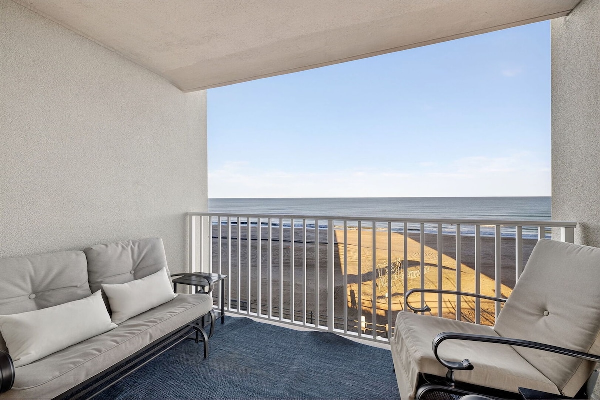 Diseño costero de lujo sacado de una revista. Vistas panorámicas al océano Atlántico. Este moderno refugio frente al mar de 2 dormitorios y 2 baños se encuentra directamente en el icónico paseo marítimo de Virginia Beach. Desde el momento en que entras por la puerta, te recibe la luz natural que entra por las ventanas, las vistas ininterrumpidas al mar y el ritmo relajante de las olas que rompen en la orilla. Despiértate con la brisa del mar y sal a tu balcón privado con un café en la mano mientras los delfines se deslizan por las olas.
