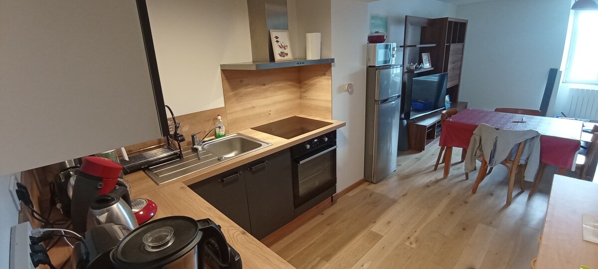 Appartement dans petite copropriété le calme de la campagne avec tous les avantages de la ville.Tous les principaux commerces en face, y compris supermarché à quelques mètres.Ce studio est situé au bord d'une forêt avec un ruisseau.Des vélos en libre service sont à dispositions pour emprunter les pistes cyclables,que se soit pour rejoindre le centre de Belfort ou la base de loisir du Malsaucy ( festival des Eurockéennes ) . Pour les adeptes du ski, un bus est disponible pour le Ballon d'Alsace.