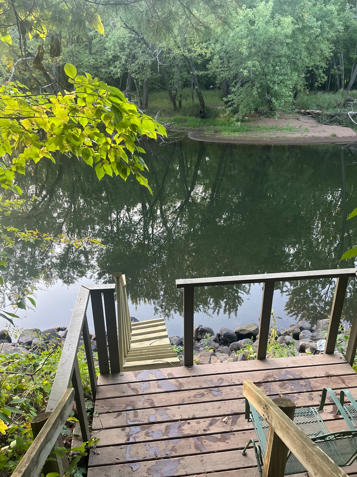 Remote, tranquil, quiet and exceedingly private getaway right on the banks of a protected river, only 1.5 hours from the Twin Cities! Even the beautiful drive there is relaxing. Enter a world of peace and calm deep in the woods. Make delicious meals in a well-stocked modern high-end kitchen, play in the river, relax in the sauna or enjoy a bonfire. This is not your typical cabin but a spiritual eco-oasis with a unique eclectic blend of modern, rustic, Native American and Japanese aesthetic.