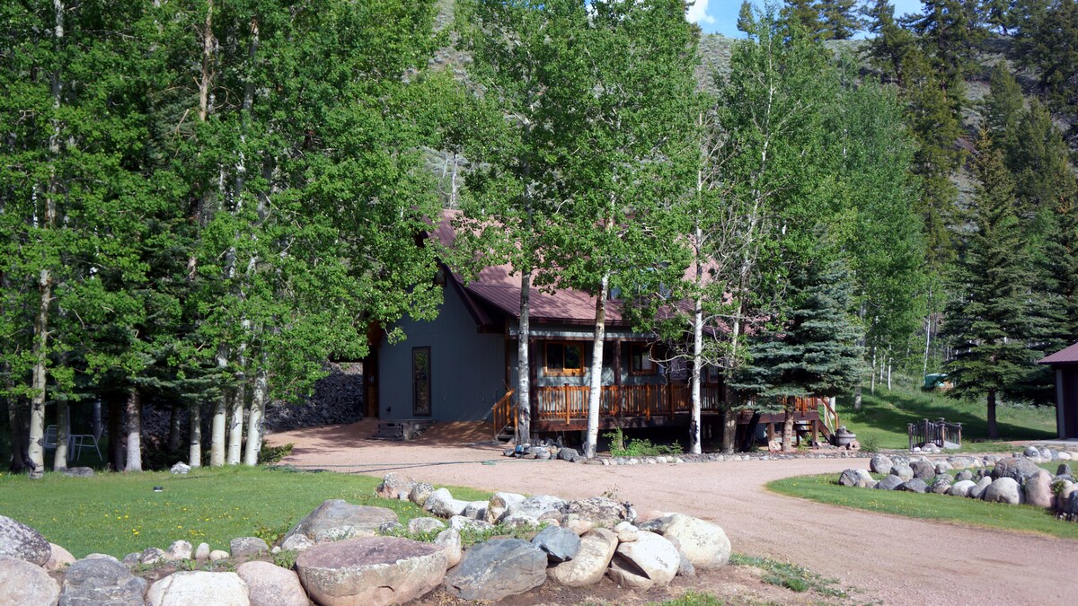 Una cabaña de aproximadamente 800 pies cuadrados. Capacidad para 4 personas, puede dormir 5 adultos; camas supletorias para niños. Se proporciona Internet y TV de espectro. La cocina tiene una nevera de tamaño completo y fogones, ollas, sartenes y platos. Lavadora y secadora gratuitas disponibles. La sala de estar abierta tiene una cama de día con cama nido. El loft de arriba tiene una cama tamaño queen y un futón tamaño queen. El patio trasero está vallado para niños y/o perros (los perros requieren permiso). La fachada privada del río Gunnison está fuera de la puerta trasera. Puedes pescar o relajarte y disfrutar de las vistas.