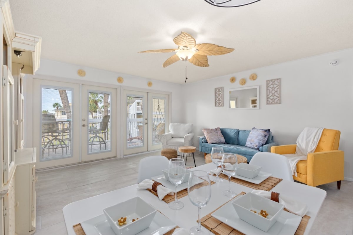 ¡Bienvenido a The Salty Pirate, tu paraíso vacacional frente al mar! Relájate en nuestro tranquilo y elegante apartamento con cama tamaño king, baño de lujo y cocina americana. Relájate en la cama, disfruta de los barcos que pasan o mira la televisión de 65 pulgadas. El balcón frente al mar te invita a leer y relajarte. Disfruta de la piscina estilo resort o reserva el kayak de 2 plazas (cuando esté disponible) para explorar la vía fluvial. ¡Los restaurantes y bares del centro de la ciudad están a poca distancia a pie y las playas de arena blanca están a 2 millas de distancia!