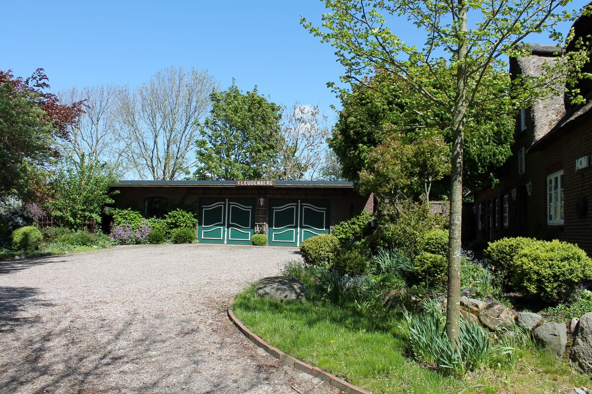 Ubicada en el punto más estrecho de Alemania, esta joya, un Geestlanghaus de 180 años de antigüedad con techo de paja, se encuentra en una ubicación tranquila y aislada con aparcamiento gratuito, a 10 minutos de la A7. Parejas jóvenes con niños pequeños, viajeros solitarios, turistas de camino al norte o al sur, pintores que buscan aislamiento, pianistas (¡piano de cola disponible!), escritores y otros creativos, amantes de las aves y amantes de los mares son bienvenidos en nuestra pequeña galería.