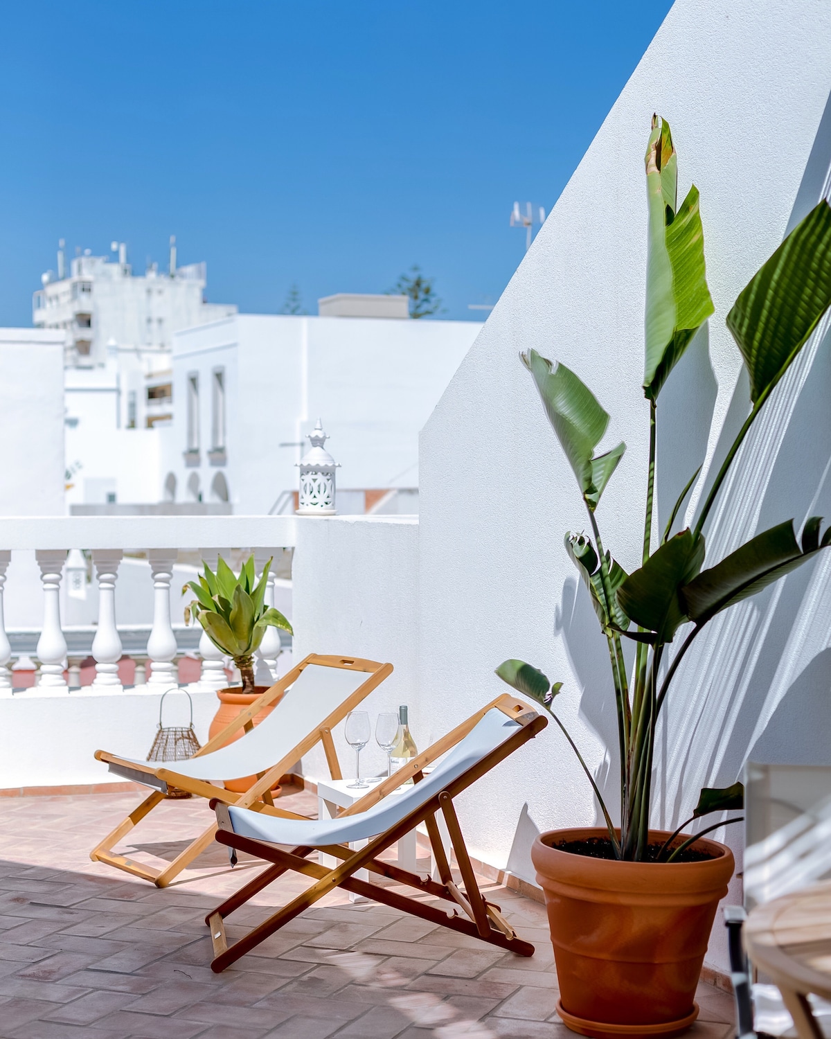 This charming suite, spacious, comfortable and full of natural light, is perfect for couples. Located on the first floor of a pretty traditional townhouse, it is very central, only 5 minutes from the ria, historic centre, restaurants, ferry to the islands (beaches in Olhão are all on the islands) and train station, and has its own private entrance on a picturesque pedestrian alley. On the terraces, with a view over the city, you can prepare and enjoy meals, sunbathe or have a nice cool shower.