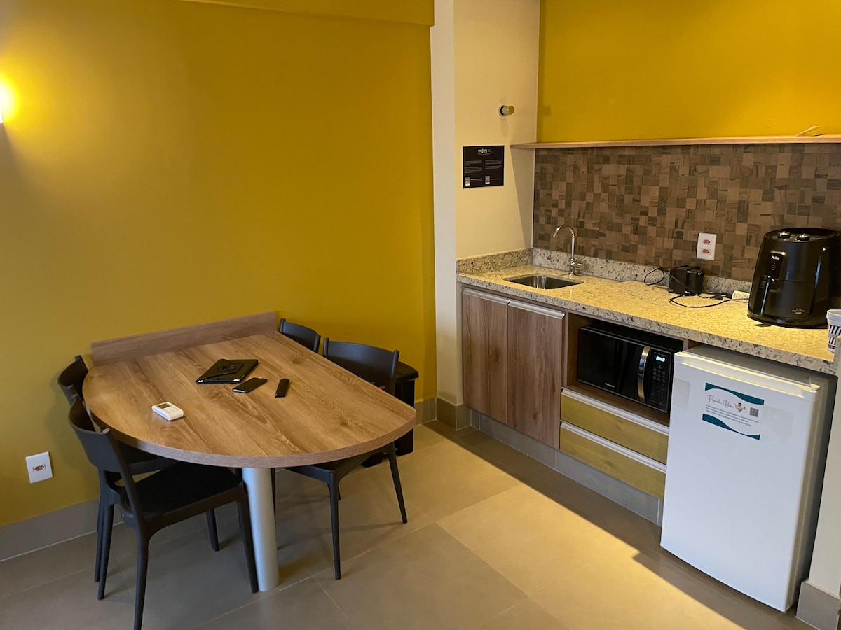 Estamos ubicados a 300 metros del Parque Thermas dos Laranjais, ¡se puede ir a pie o en el traslado que se ofrece como cortesía! La estancia incluye: Valet Estacionamiento (1 plaza) 1 cama king 1 cama individual 1 cama auxiliar 1 sofá cama (pareja) Microondas (sin utensilios) Heladera Secador de pelo Smartv Wifi Ropa de cama y baño Toalla de piscina Gimnasio Área Kids Mini cine Sala de juegos Servicio de habitaciones *La comida no está incluida en este alquiler.*
