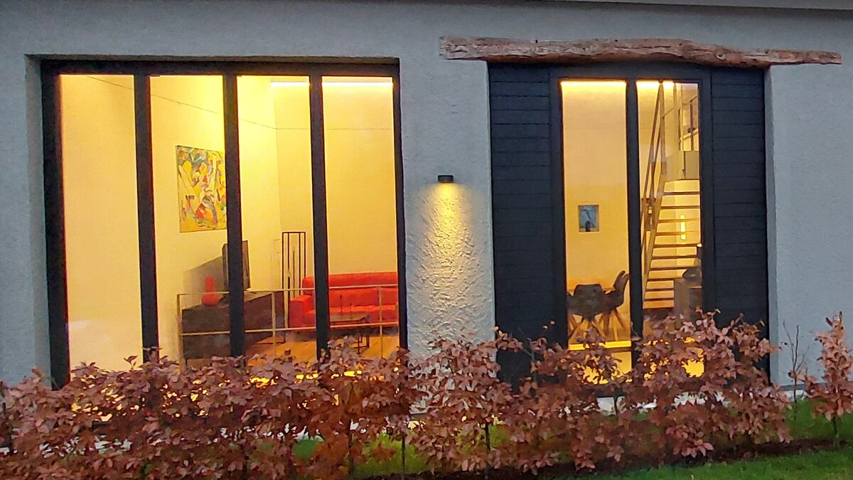 Stylish small 1 room guesthouse with air condition in the green, beside the railway track Trier - Koblenz and right beside the tracking and recreation area Meulenwald. To Trier by car arrond 18 min (also by bus & train). River Mosel lieing haf the way to Trier. Sport airfield, golf course nearby. 10 km to the recreation lakeTriolage (watersports). Approaching by train possible (ask for transfer). Cycle track right in front of.