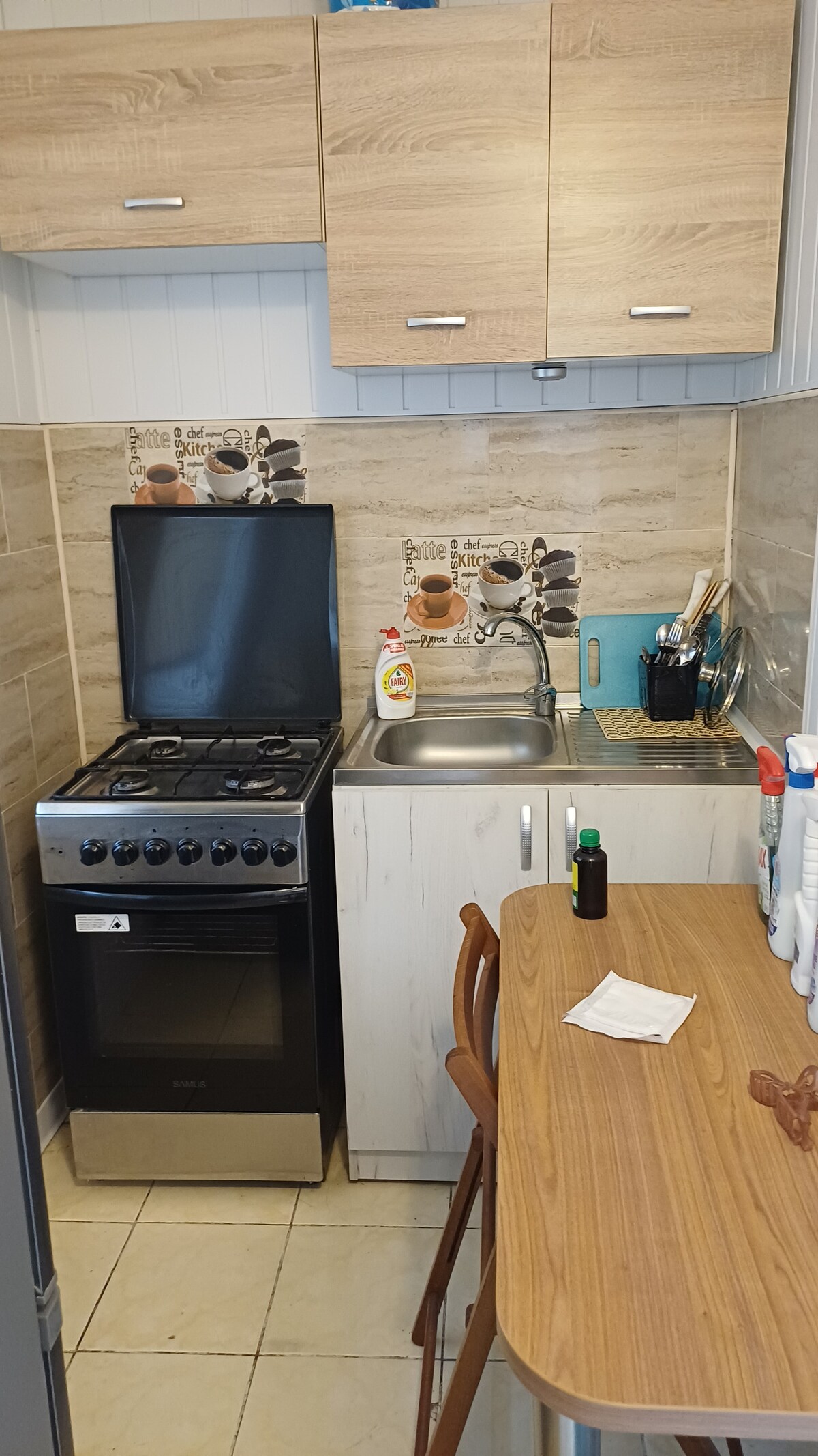Lugar completamente nuevo decorado con muebles y electrodomésticos nuevos, ubicado cerca del centro de la ciudad (a unos 500 metros a pie), con supermercados cerca. El estudio del primer piso (sin ascensor) tiene una zona de dormitorio con un sofá extensible para 2 personas. El estudio cuenta con cocina totalmente equipada, nevera, cafetera expreso, horno microondas, placa de cocción a gas, lavadora, aire acondicionado, cable gratuito, TV inteligente y wifi gratuito. Aparcamiento privado y público gratuito cerca del edificio.