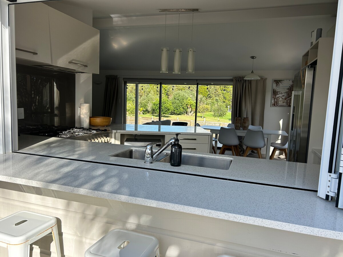Disfruta de las preciosas vistas del campo de prácticas de golf de Omaha, frente al estuario y las colinas. El club de golf está a la vuelta de la esquina, a pocos pasos de la impresionante arena blanca de la playa de Omaha y de los cafés. El nuevo carril bici está justo enfrente. Pasea por Matakana por el carril bici sobre tierras de cultivo. Precioso apartamento de 1 dormitorio y 1 baño con salón/sala de estar/cocina americana independientes. Matakana está a 10 minutos en coche. Disfruta de los hermosos mercados locales, cine, tiendas y restaurantes.