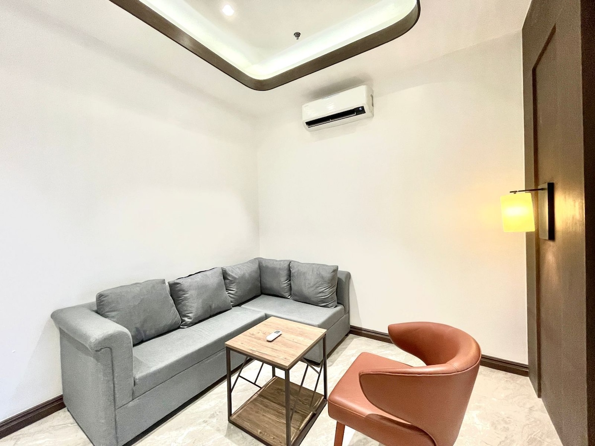 Apartamento ubicado dentro del Luxury Penthouse Hotel. La unidad está ubicada en el noveno piso y está lujosamente decorada con muebles exquisitos, iluminación ambiental, cama tamaño king, ducha de efecto lluvia, nevera de tamaño completo, fogones, agua potable gratuita, aire acondicionado, sonido envolvente, reproductor de DVD, TV por cable de pantalla grande de 55 pulgadas y wifi. El hotel también cuenta con un generador, por lo que nunca te quedarás sin electricidad.