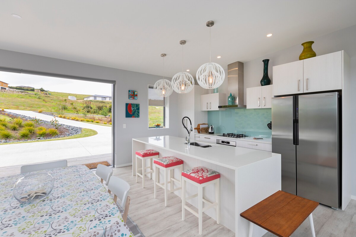 Bienvenido. Este espacio ha sido cuidadosamente diseñado para tu comodidad. Te sentirás relajado en cuanto llegues y disfrutes de las vistas panorámicas del océano con una vista impresionante de las islas Hen and Chicken y Sail Rock. Experimenta la hermosa artesanía en todo el espacio, los gabinetes de roble americano y una paleta de colores relajantes que funcionan en armonía con el entorno rural y costero. Dormirás bien en el colchón de espuma viscoelástica fabricado en Nueva Zelanda con ropa de cama de lino de calidad.