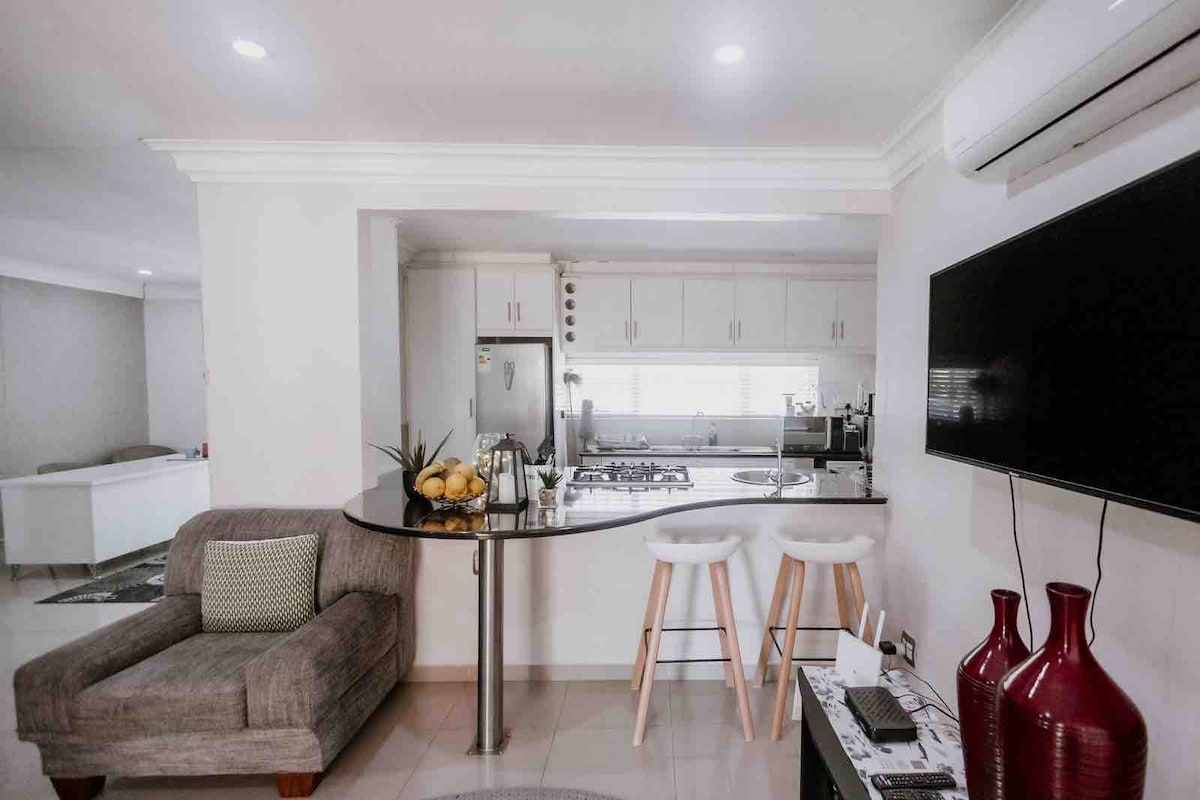 Escapa del ajetreo en este espacio tranquilo, elegante y acogedor. Situado en un barrio tranquilo a cinco minutos del aeropuerto y de los servicios cercanos, ya sea que viajes por trabajo o por placer, Clifton Home es el lugar para ti. Ofrecemos tu propia entrada privada, estacionamiento seguro bajo una cochera, wifi, TV con Netflix y Amazon Prime, un géiser de gas y cocina de gas, ropa de cama de calidad, aire acondicionado y tu propio jardín privado con un braai.