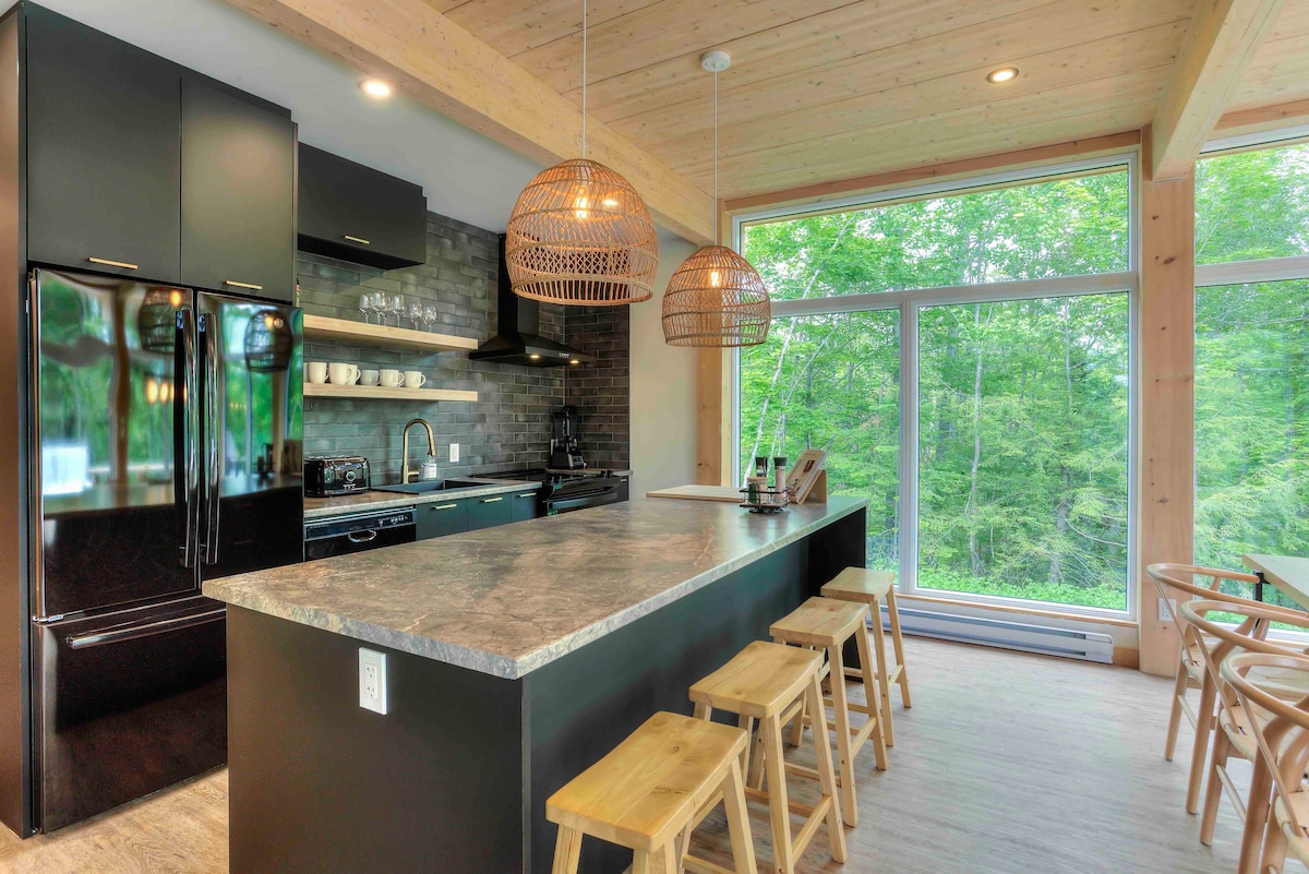✨ Chalet Lägom – Experiencia escandinava en el corazón de los Laurentides. Diseño depurado y luminoso, confort moderno y naturaleza relajante. A menos de 10 km: tiendas de comestibles, gasolinera, descenso en kayak, restaurantes, playas, senderos para motos de nieve, trineo de perros, senderismo de montaña, esquí de fondo, toboganes y mucho más. ⛷️ A menos de 15 minutos del Mont-Tremblant, los amantes de los deportes de invierno estarán encantados de deslizarse por las pistas de una de las estaciones de esquí más bellas de Quebec. 📌 CITQ: 307976