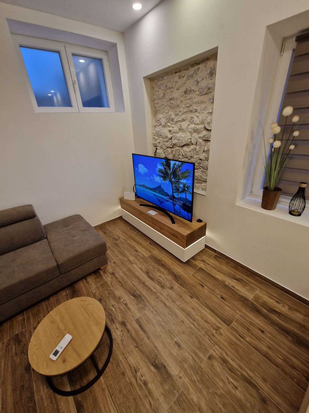 Wake up to the gentle sound of crickets and the fresh scent of pine trees as the morning sun fills your apartment with light. Enjoy your first coffee on the private balcony while taking in the calming sea view, knowing that beautiful white-pebble beaches and crystal-clear water are just moments away. After a day in the sun, unwind with a glass of Dalmatian wine as the sky turns gold, and end the evening under a peaceful, star-filled sky — your perfect coastal escape.