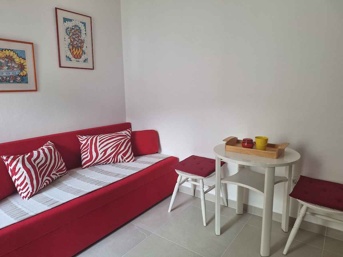 Un apartamento estudio con vistas al mar Adriático. A solo 50 m de la playa y a unos pasos de las rutas de senderismo de kilómetros de largo. El estacionamiento está disponible y es gratuito para los huéspedes, ya sea frente a la casa o en el estacionamiento cercano.
