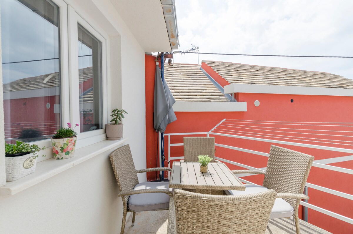 Nuestro apartamento se encuentra en la zona tranquila de Primošten. Este apartamento te ofrece un dormitorio, baño con ducha, cocina con sala de estar y comedor, un sofá cama y 2 balcones con hermosas vistas al mar. También está equipado con wifi, aire acondicionado y TV.