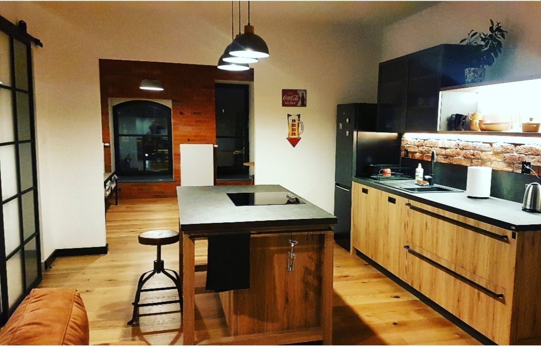 Gran apartamento de estilo loft en la histórica fábrica de cerveza recientemente restaurada cerca del centro de Breslavia, a 7 minutos en tranvía de la plaza del mercado y Ostrow Tumski, catedral. El tranvía para al otro lado de la calle. La cervecería está junto al río Odra, carriles bici, chiringuitos, cafeterías, panaderías. Primer piso/edificio con ascensor, cocina con sala de estar, dormitorio grande con cama tamaño king, ventanas históricas, paredes de ladrillo, terraza privada. Aparcamiento gratuito disponible en el complejo, equipamiento de cocina, TV, wifi, toallas, secador de pelo, espacio de trabajo, sofá cama