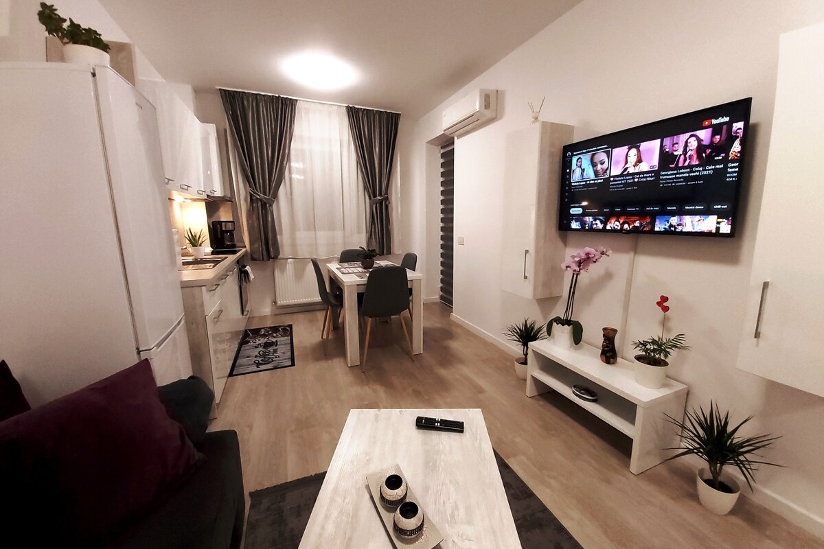 We invite you to discover a modern apartment, perfect for a relaxing or productive stay. This space is ideal for couples, business travelers or small families. It includes a bright and welcoming living room, a fully equipped kitchen, a relaxing bedroom and an elegant bathroom. The balcony offers a space for relaxation. With an excellent location, just a 4-minute walk from Unirii Square, you will be close to the city's main attractions, restaurants and public transportation.