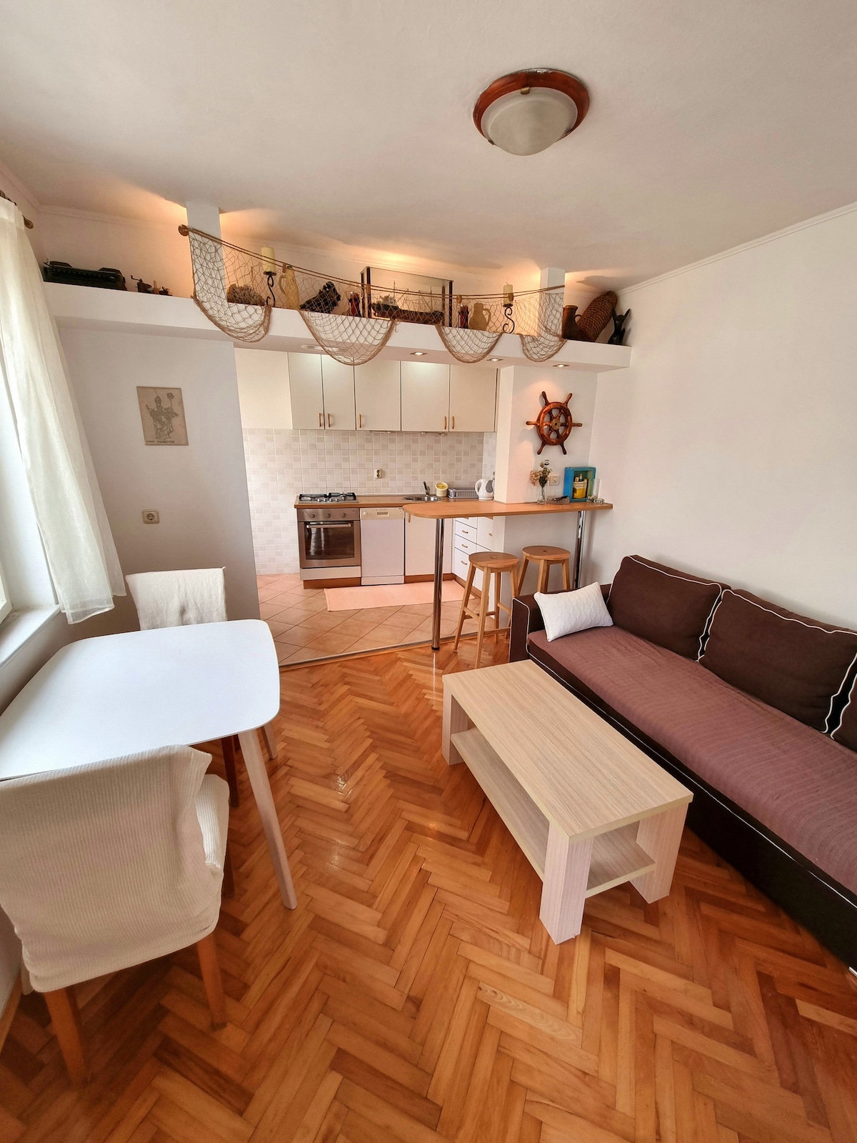 El apartamento está en una casa de piedra a solo 150 metros de las murallas de la ciudad... a 3 minutos a pie... Los apartamentos están a SOLO 40 METROS SOBRE EL NIVEL DEL MAR y justo enfrente de la playa más popular de la ciudad, Banje. Este apartamento ahora está actualizado en un alojamiento de 1 habitación de primera categoría: una cama francesa y un sofá cama en la esquina. Para la temporada 2023 y posteriores, tendrá capacidad para hasta 3 personas. Calidad de primera categoría, habitación grande, cocina y baño cómodos y modernos, aire acondicionado nuevo.