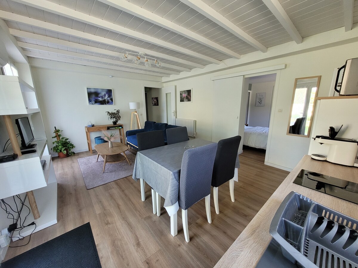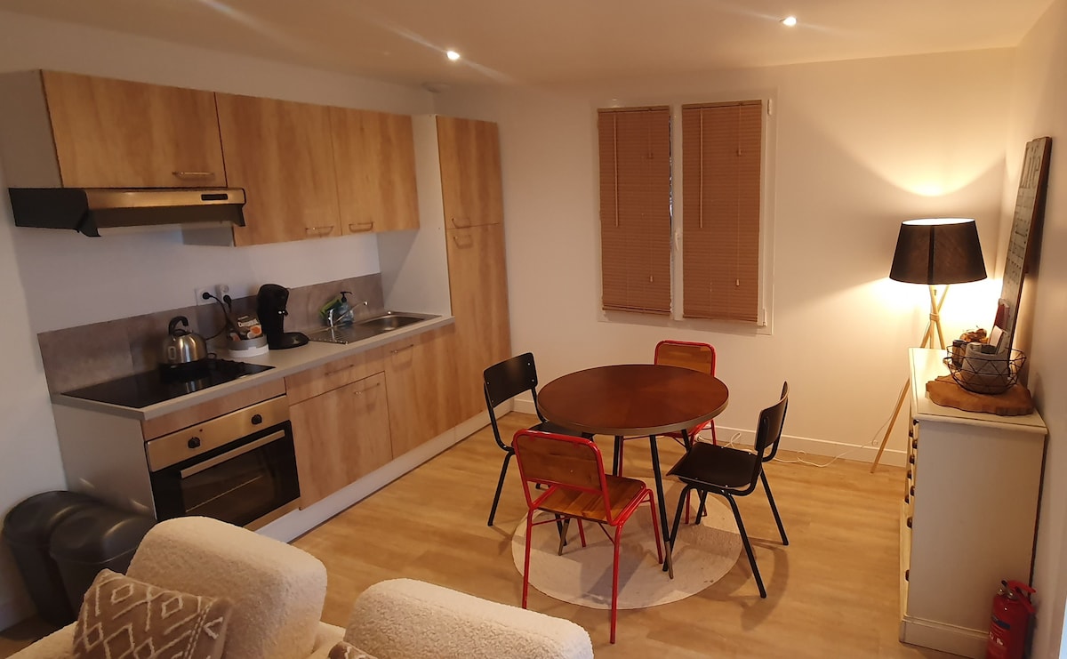 35m2, 2 habitaciones en el corazón del pueblo de St-Jean en Royans, en una isla de verdor y tranquilidad. Pie en tierra ideal para dejar el coche y disfrutar de todos los servicios a pie, pero también ir a explorar el Parque Regional Natural de Vercors. Entrada independiente. No hay roscas. Aparcamiento cerrado y seguro ideal para motos y bicicletas. Arriba patio con pequeños muebles de jardín Instalaciones: - tv, wifi - cama de matrimonio 140 ropa de cama nueva - Baño con ducha - Equipamiento para bebés - cafetera senseo
