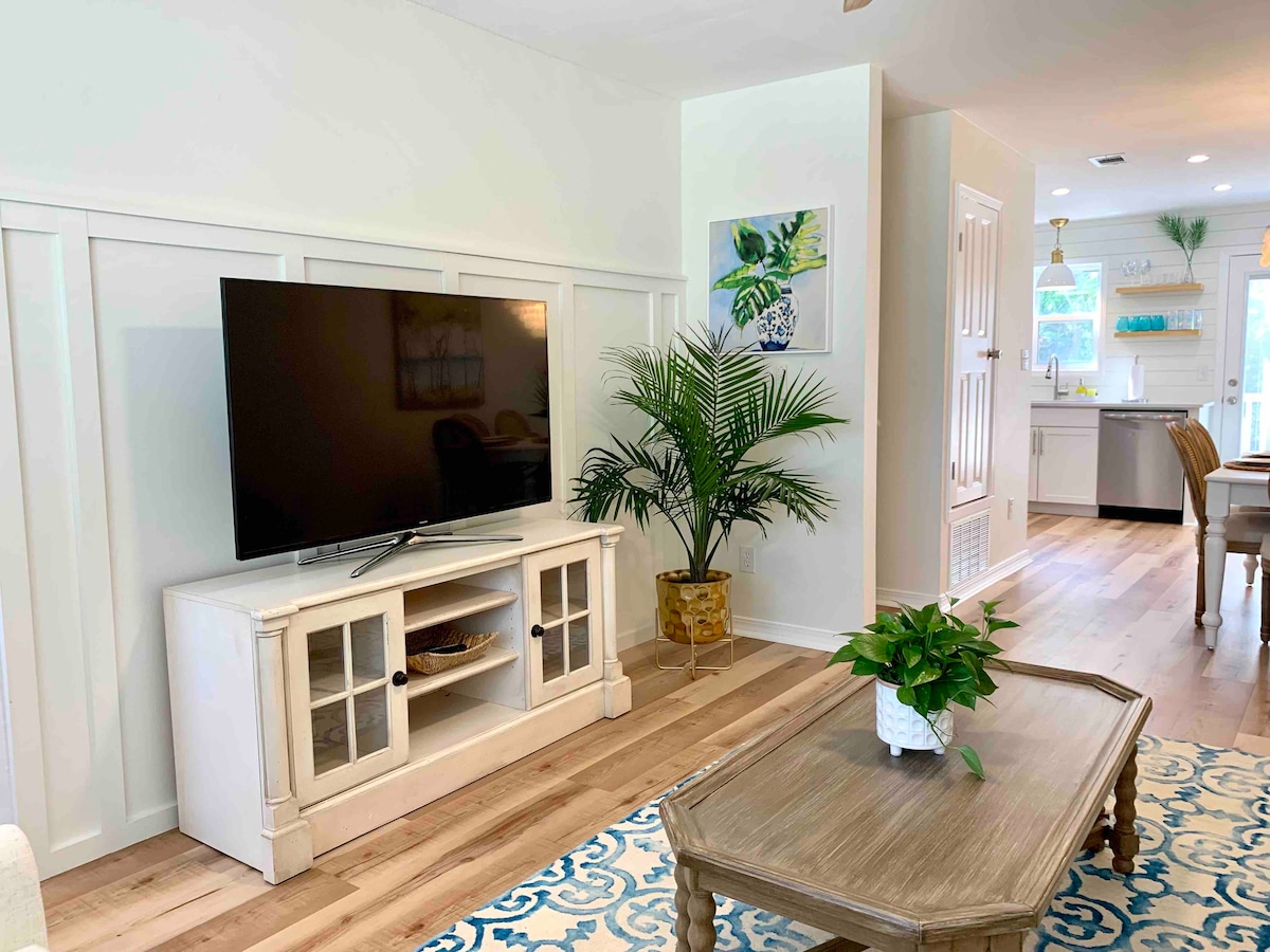 ¡Te damos la bienvenida a la villa! Moderna y recién reformada casa de 2 dormitorios y 2 baños (6 huéspedes) ubicada en el corazón de Gulf Breeze. Ubicado cerca de las hermosas arenas blancas de Pensacola Beach (3 millas) y de las tiendas de Gulf Breeze. Disfruta de una estancia tranquila con un patio trasero privado con asientos al aire libre y luces diseñadas para las noches de verano. Bienvenido a nuestro acogedor alquiler vacacional con electrodomésticos de cocina nuevos y una barra de café totalmente surtida. ¡Estamos deseando recibirte en tus vacaciones! - Sonya
