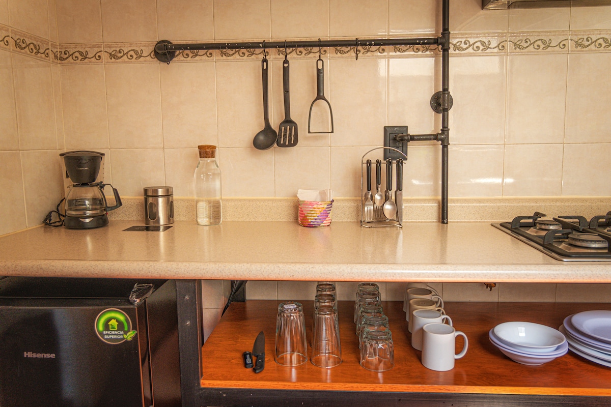 Nuevo departamento con ambiente mexicano ubicado muy cerca del centro de Orizaba, que te invita a disfrutar una agradable estancia en una zona segura para poder disfrutar los lugares mas hermosos de la ciudad. Cuenta con una habitación amplia para dos personas, baño completo, area de cocina completa, entrada independiente, y nuestro apoyo y atención para hacer tu estancia más agradable