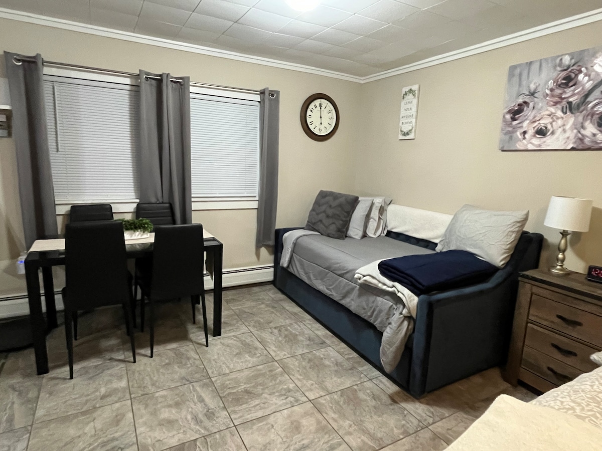 Nuestra casa de huéspedes es un apartamento tipo estudio privado e independiente. Cerca de muchas actividades locales, como ciclismo de montaña en Kingdom Trails, motos de nieve en V.A.S.T., Burke Mountain Resort y el hermoso lago Willoughby. La cocina completa incluye nevera/congelador, cocina con horno, tostadora, cafetera, cubiertos, cristalería y utensilios de cocina. El baño tiene una ducha vertical y se proporcionan sábanas y toallas completas. Te invitamos a que te hospedes con nosotros y pases tiempo viendo lo que el norte de Vermont tiene que ofrecer.
