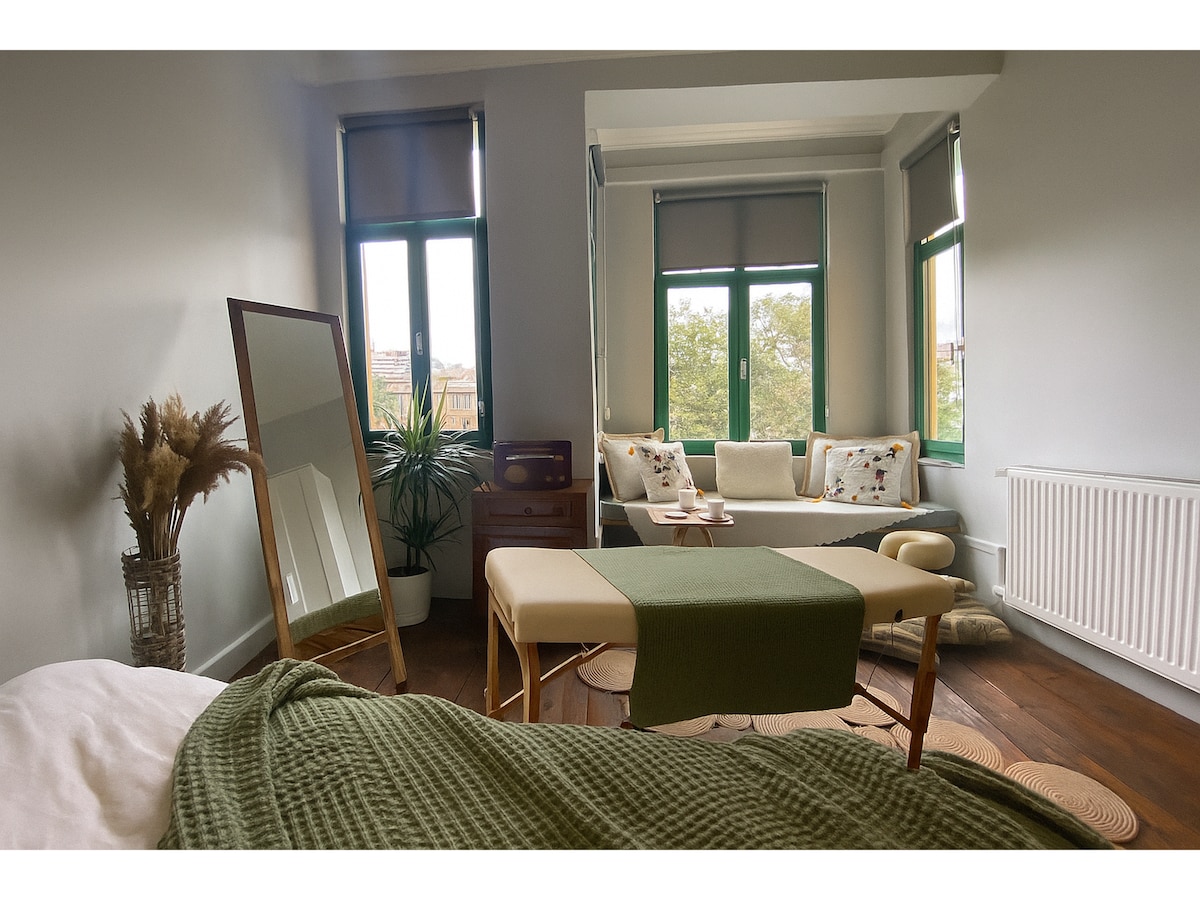 Increíble apartamento con vistas junto al patriarcado en el centro de Balat. - A 10 minutos de la plaza Taksim. - A 15-20 minutos de Santa Sofía, la Mezquita Azul y el Gran Bazar (transporte público). - Terraza compartida con vistas al mar. - Baño privado. - Lavadora. Experiencia local en centros cercanos y lugares turísticos. * Cómodo dormitorio privado. *Terraza * Cocina equipada * Calefacción * Internet wifi gratuito * Horarios flexibles de llegada y salida Terraza: terraza en la azotea con vistas a la ciudad solo pertenece a mi casa y a mis queridos huéspedes.