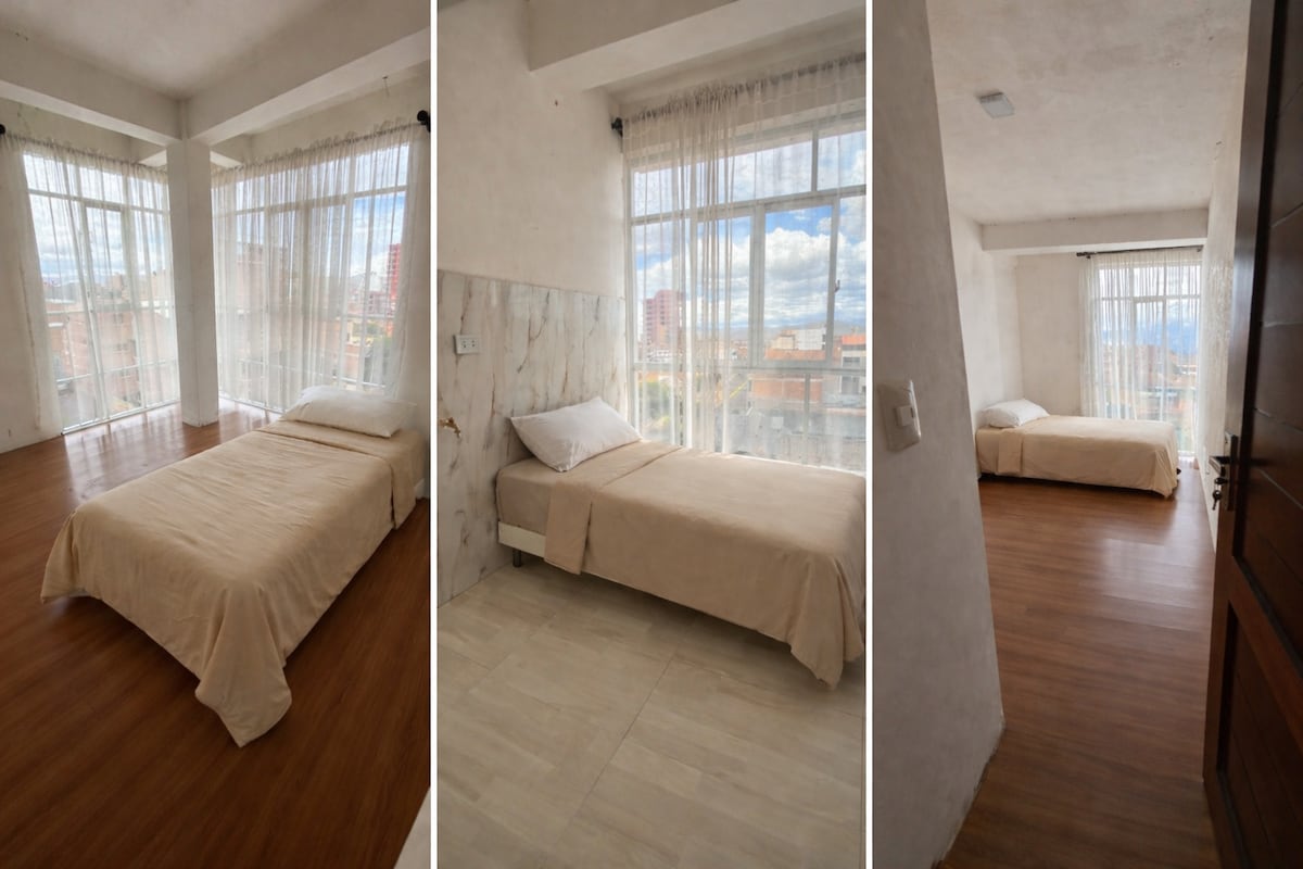 Un amplio departamento ubicado en el centro de Oruro, a una cuadra de la Av. 6 de agosto y mercado Campero. Tienes agua caliente las 24 horas y todo lo necesario para que tu estadia sea acojedora.