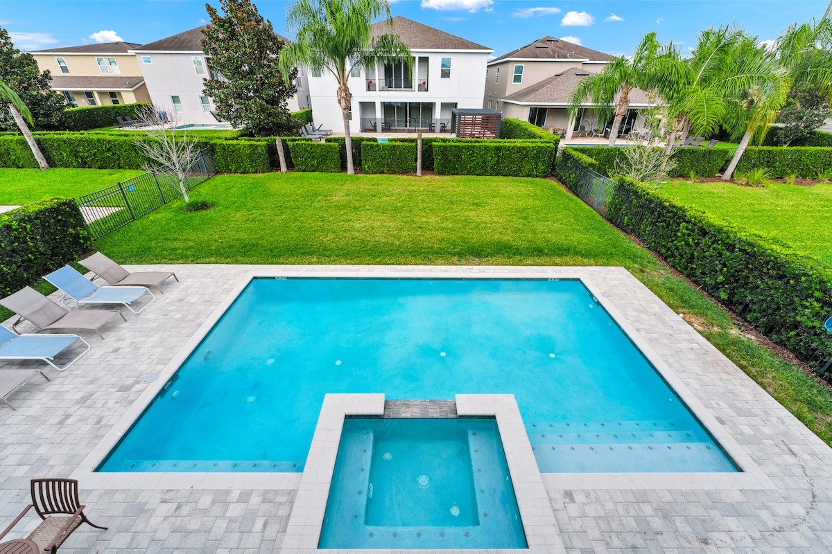 7 dormitorios, 14 camas, 7 baños, piscina climatizada y cerca de Disney