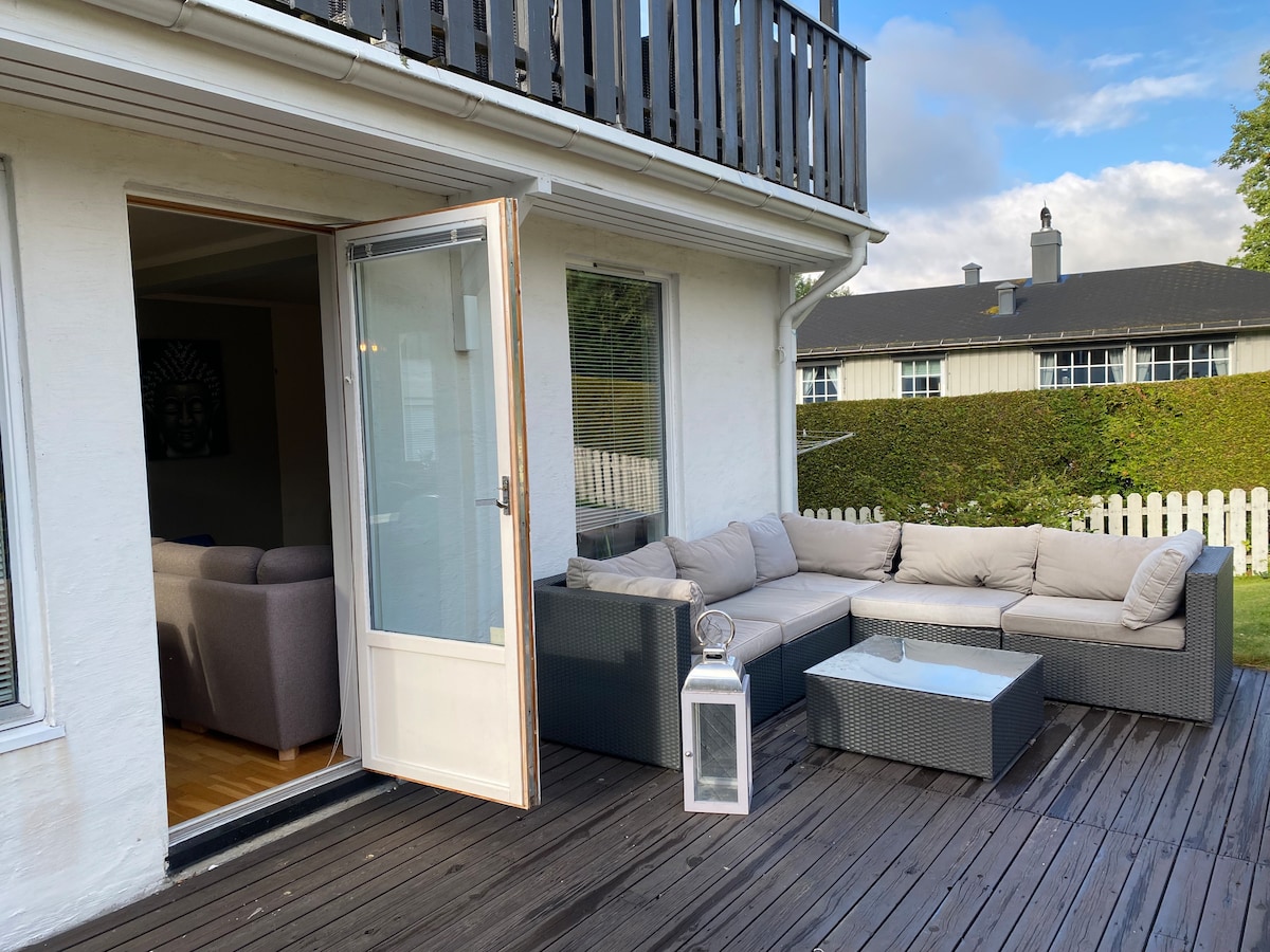 Disfruta de un apartamento de 70 m2, con 2 dormitorios, suelos radiantes y una chimenea, todo para ti. Un jardín aislado con mesa de comedor, hamaca y una sartén para fogatas, dos kayaks estables con trajes de neopreno y chalecos salvavidas están a tu disposición. Fantásticas oportunidades para la vida al aire libre y la relajación, y a solo una hora del corazón de Oslo. Comunicación en autobús y ferry cada 30 minutos.