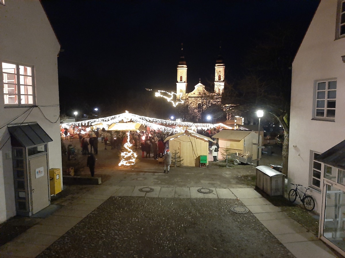 El apartamento recién renovado y ampliado se encuentra en el corazón de Füssen, en medio de la romántica zona peatonal. Todas las tiendas están a poca distancia. La estación de tren se encuentra a 5 minutos a pie. La ciudad y la región ofrecen un sinfín de posibilidades de ocio. Senderismo, ciclismo, natación, deportes de invierno, todo es posible dependiendo de la temporada. Los castillos del rey Luis II están a cuatro kilómetros de distancia. Las ciudades comerciales más grandes son Kempten, Kaufbeuren, Augsburgo o Múnich.