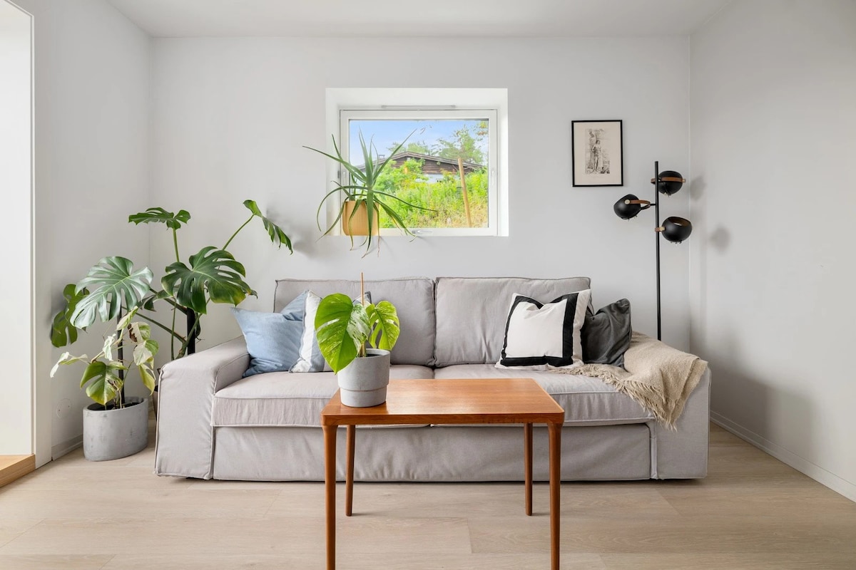 Disfruta de un apartamento moderno y de alto nivel de un dormitorio en la planta baja de una casa. Este alojamiento privado con vistas al jardín ofrece tranquilidad y comodidad a solo 5 minutos a pie de la estación de metro. Con fácil acceso en 15 minutos al centro de Oslo, es perfecto para explorar la ciudad mientras disfrutas de un refugio tranquilo. Ideal para viajeros solitarios o parejas que buscan un alojamiento elegante y céntrico con excelentes conexiones de transporte y un ambiente acogedor y privado. Es posible salir más tarde, pero siempre bajo petición.