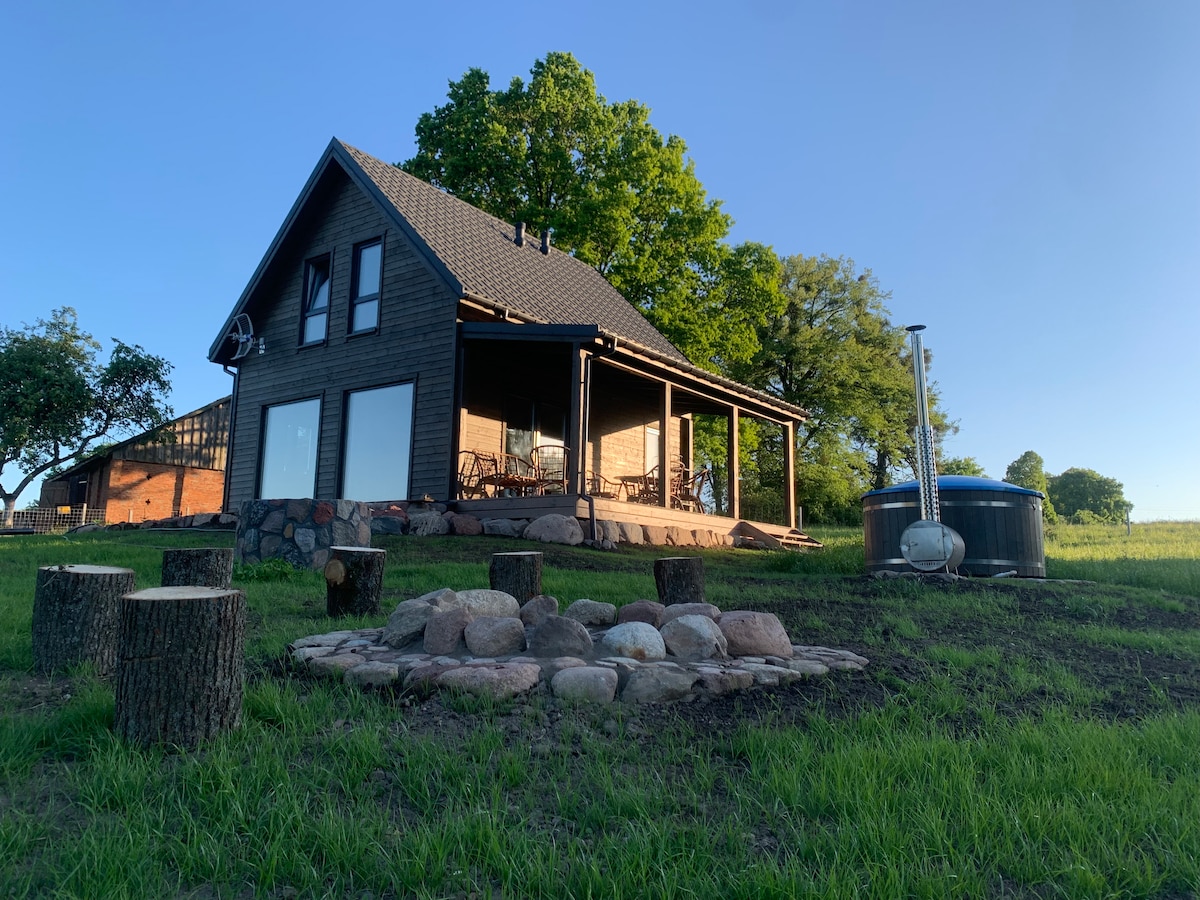 Cozy eco cabin in Warmia – nature, peace, privacy. Perfect for a weekend escape, romantic stay or family time. Surrounded by meadows and forest, with private terrace, fireplace, and full kitchen. Pet- and child-friendly. Close to lakes, trails and historic villages. Sielski domek na Warmii –cisza, natura, relaks. Idealny na wyjazd offline, z rodziną lub we dwoje. Kominek,taras, wyposażenie. Wśród zieleni, blisko jezior, lasów i szlaków. Przyjazny dzieciom i zwierzętom. Tu naprawdę słychać ciszę.