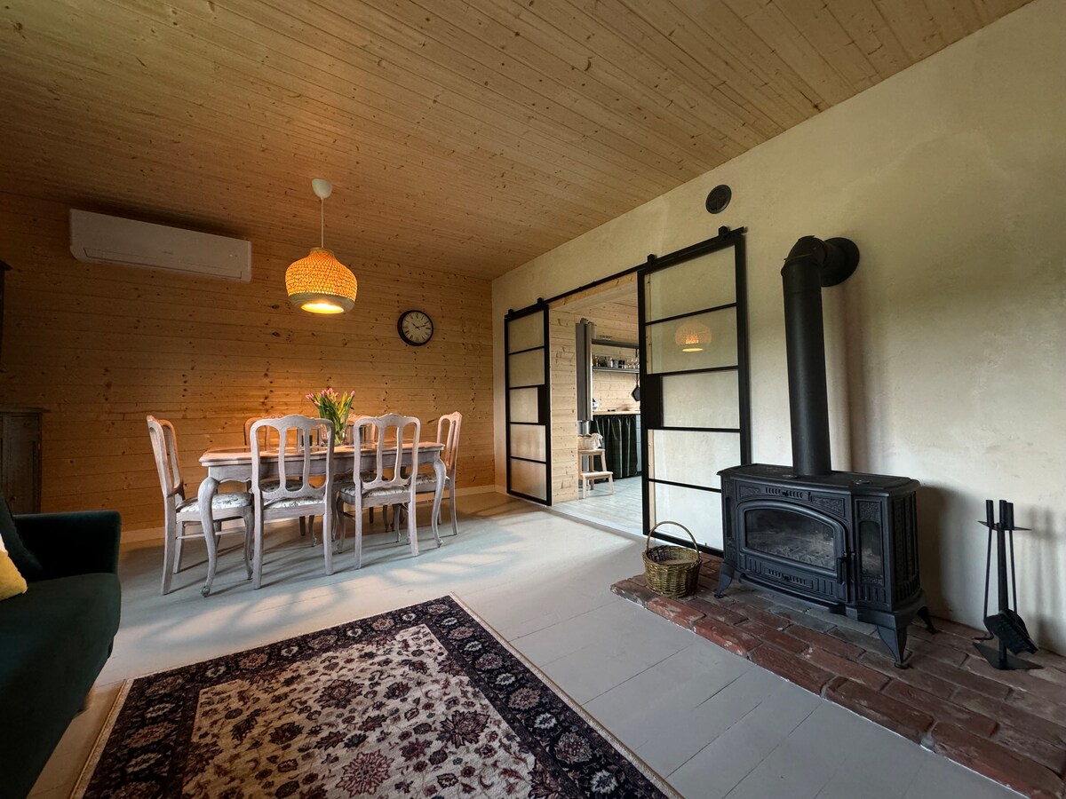 Drewniany domek przy jeziorze, w ciszy i przepięknej okolicy. Doskonały na rodzinny wypoczynek, jak i miejsce pracy w skupieniu. Do dyspozycji lódka, kajak i 2 rowery. Dom jest ogrzewany za pomocą kominka, posiada także ogrzewanie elektryczne. Wooden house near the lake sourounded by beautiful nature. Excelent place for family vacation or to calm down a bit. For your use there is a boat, canoe and two bikes. There is a fire place and an electric heating as well.