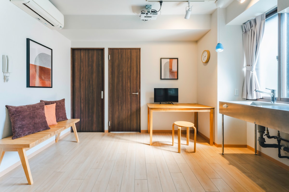 Apartamento de nueva construcción a 7 minutos a pie de la estación de tren, con proyector de 100 pulgadas y 31 m², bienvenidos a largos periodos de estancia