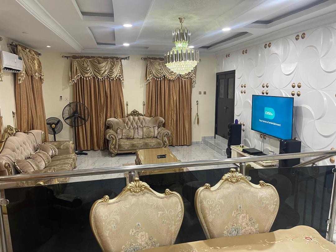 Experimenta la comodidad y la elegancia en esta exquisita casa, magnífico exterior e interior amueblado con buen gusto. Relájate en una espaciosa sala de estar, relájate en dormitorios acogedores cada uno con su propio hermoso baño. Ubicado en una de las fincas más seguras de Lagos. Servicios: cancha de tenis/baloncesto, senderos panorámicos para caminar/correr. A minutos del aeropuerto, acceso rápido a todas las partes de Lagos. El puente Third Mainland y las principales autopistas a los estados circundantes están cerca, perfectos para viajeros de negocios y placer.