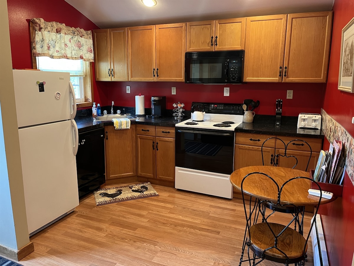 Apartamento con vistas al lago en una segunda planta con escaleras a la entrada privada. Terraza con asientos y comedor con vistas al lago. 2 dormitorios. Uno con cama tamaño king con vistas al lago. El segundo dormitorio con cama tamaño queen con vistas al bosque. 1 baño, sala de estar con TV, cocina y comedor. El acceso al lago está justo al otro lado de la carretera para nadar, hacer kayak, pescar y lanchas no motorizadas, chimenea y mesa de picnic.