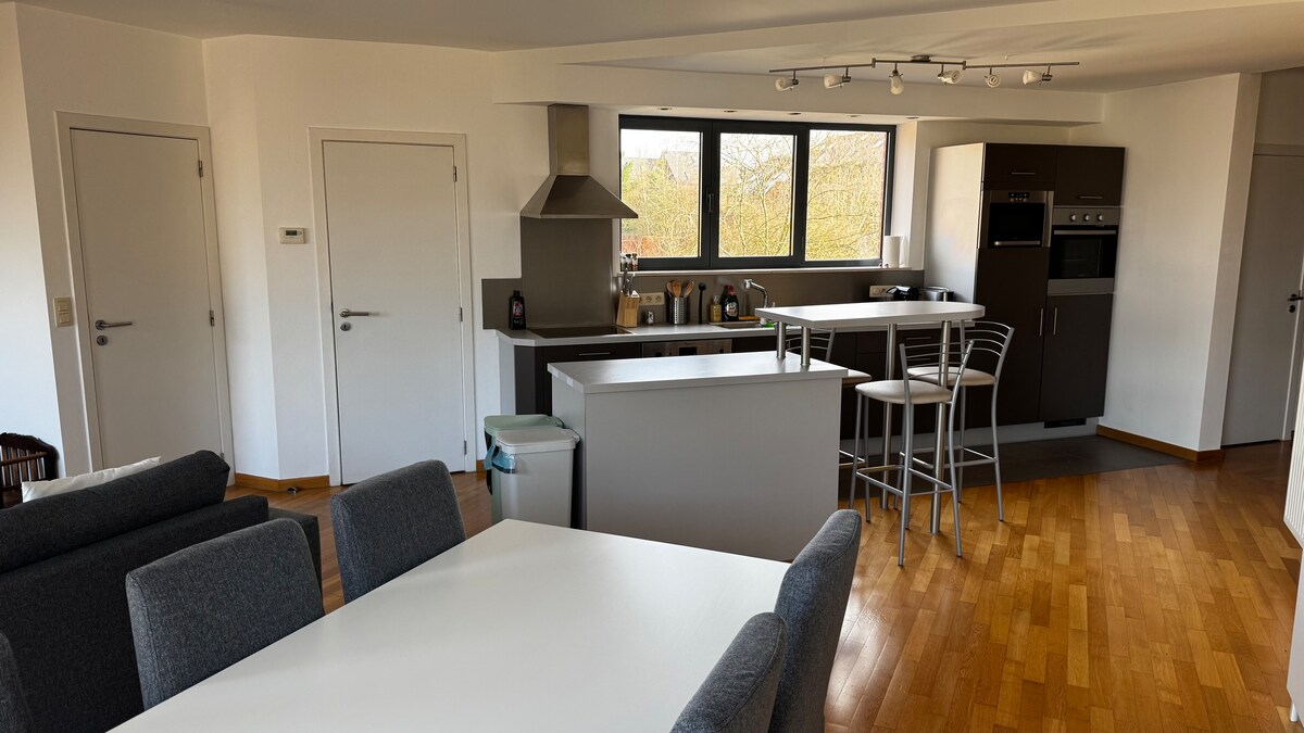 Apartamento de 85 m² con 2 dormitorios en pleno centro de Lovaina-la-Nueva. Ofrece comodidad y privacidad. Perfecto para estancia profesional, en familia o con amigos. Consta de 2 dormitorios con cama doble, 1 sala de baño, 1 cocina con barra, 1 salón con espacio escritorio y un comedor, 1 terraza, 1 vestíbulo y 1 aseo separado. Supermercado abajo. Aparcamiento gratuito. ALDI cercano. Centro ciudad y estación LLN 10 min a pie, estación Ottignies 20 min por bus 31