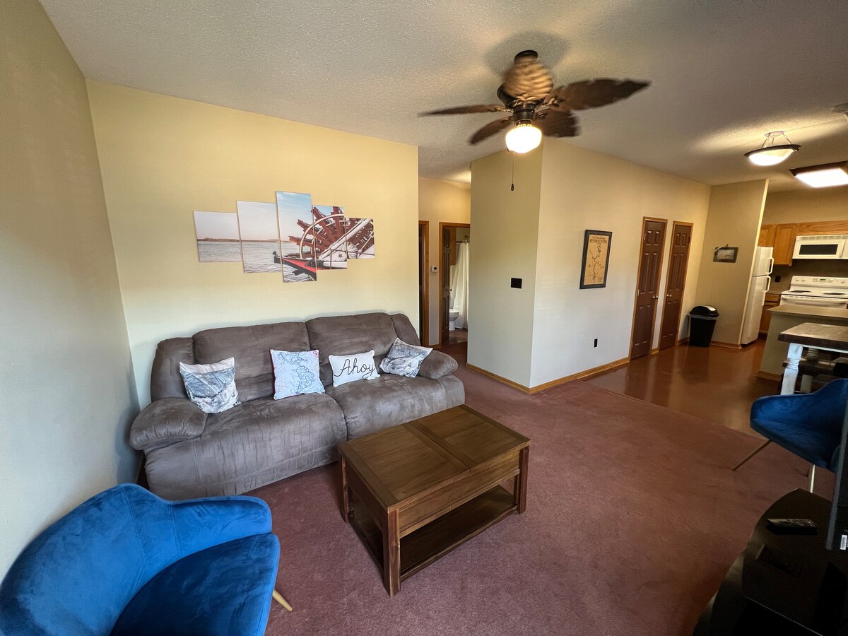 4 dormitorios, 2 baños Parrilla • Amplia terraza • Fogata • Vistas serenas Relájate en la cubierta, enciende la parrilla o echa el anzuelo y pesca un pez, todo a solo unos pasos de la puerta trasera. Dormitorios: • BR 1 – Cama tamaño king + baño • BR 2 – Cama tamaño king + TV inteligente • BR 3 – Cama tamaño queen, vista al lago • BR 4 – Cama completa, vista al lago Baños: • Baño en el pasillo: bañera/ducha con varita de mano • Baño principal: ducha a ras de suelo con cabezal de mano Nota: se requieren escaleras elevadas para el alojamiento. Los huéspedes que necesiten supervisión deben ser vigilados al aire libre por seguridad.