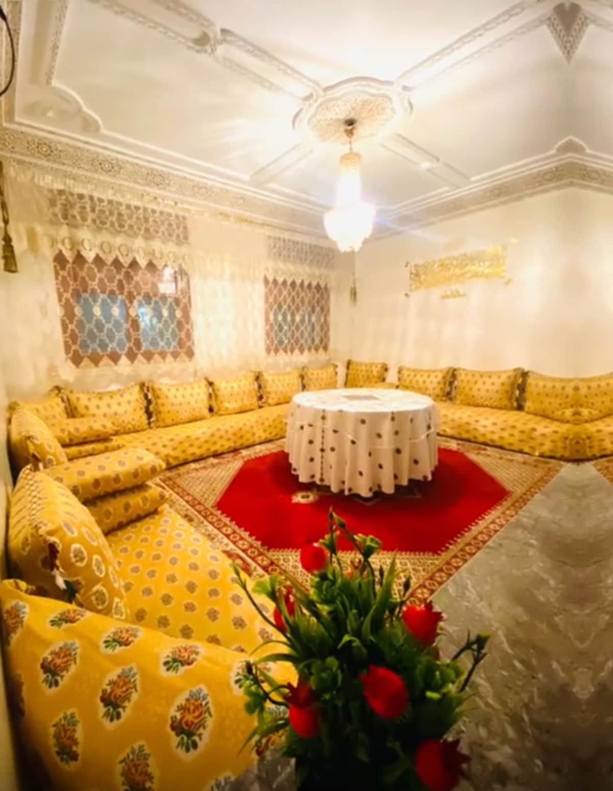 Un pequeño palacio tradicional a 10 minutos a pie desde la entrada de la Medina. La casa está cerca de una farmacia y una tienda de comestibles. UNA CASA PRIVADA QUE NO COMPARTIRÁS CON OTROS HUÉSPEDES. El precio depende de la cantidad de huéspedes. Wifi disponible. Hayat puede servir comidas tradicionales, que está ahí para ayudar y limpiar cuando lo solicites. Si quieres tener más privacidad, díselo.