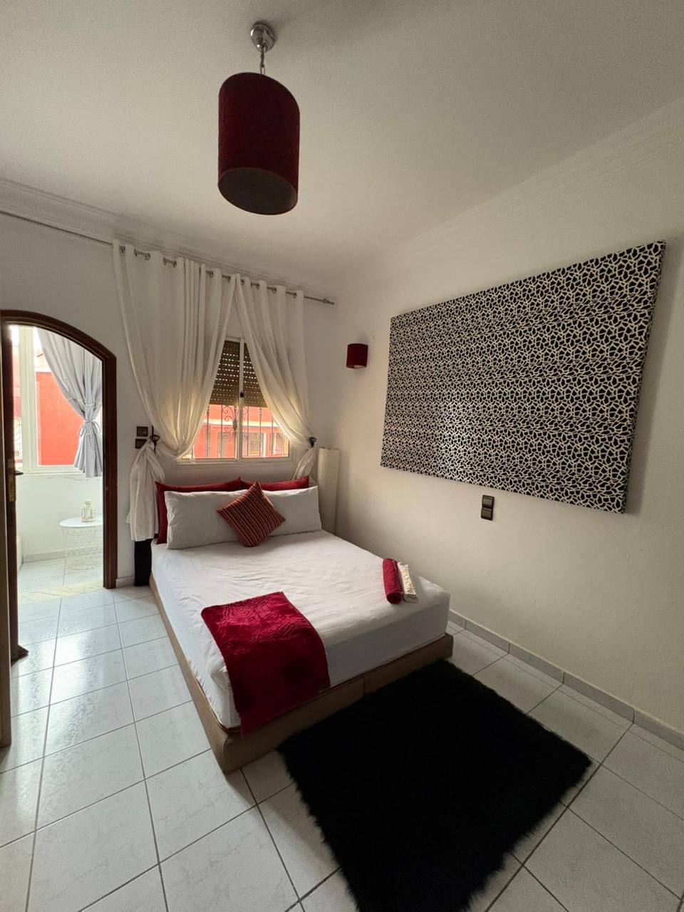 Appartement Élégant avec Terrasse Bienvenue dans ce magnifique appartement alliant modernité et confort, idéalement conçu pour un séjour relaxant. Situé au rez-de-chaussée, ce logement lumineux et spacieux Il se trouve à seulement 5 minutes en voiture de la plage, le centre commercial Carrefour est à 3 minutes à pied Que vous soyez en couple, en famille ou entre amis, cet appartement vous garantit un séjour agréable. Pour les couples marocains, il est important de présenter un acte de mariage.
