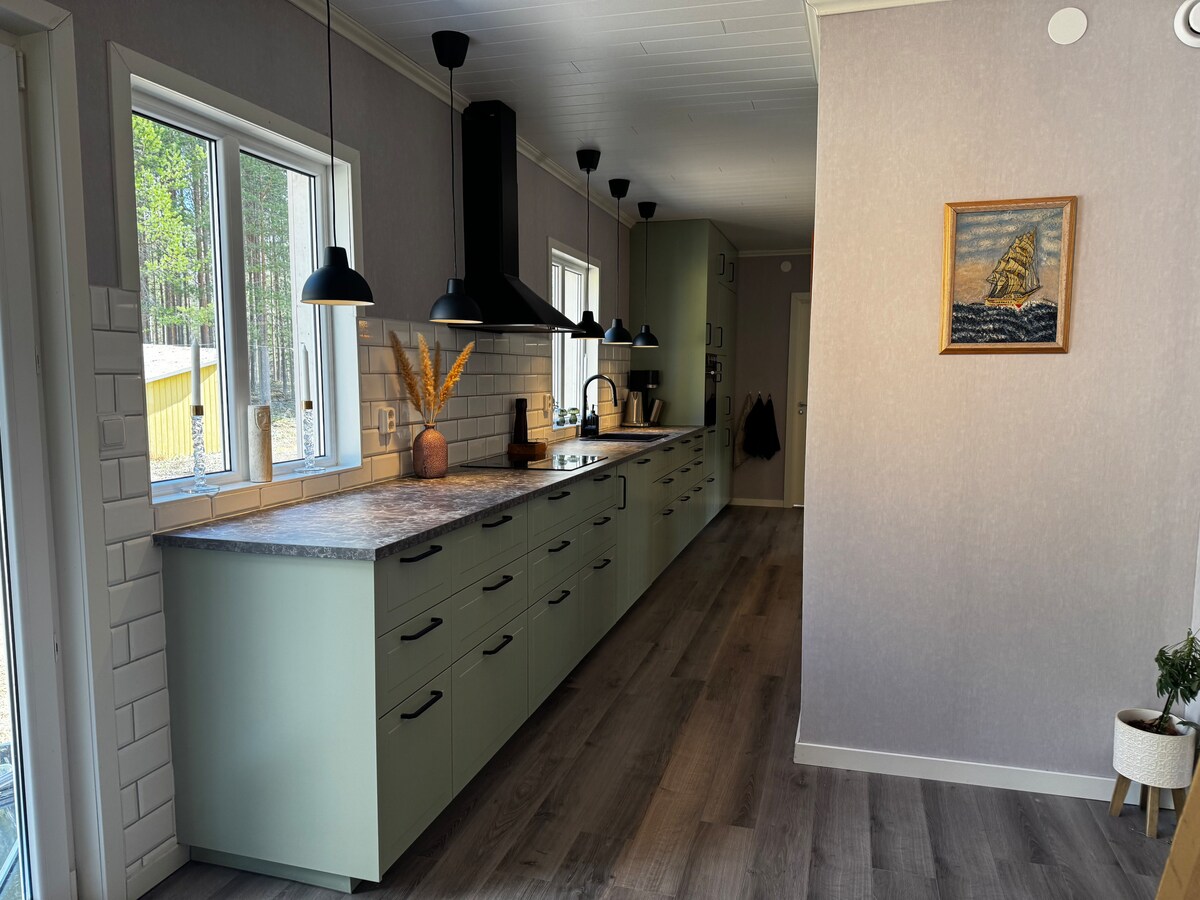 Välkommen till en enplansvilla med öppna ytor och ett genomtänkt hem, perfekt för dig som söker lugn och närhet till naturen. Här bor du avskilt med skogen runt knuten och en kort promenad till stranden vid Lömming Det stora köket bjuder in till matlagning och långa, avslappnade middagar tillsammans. Den öppna planlösningen skapar ett ljust och luftigt hem där det är enkelt att umgås Efter en dag vid vattnet väntar den mysiga kaminen, en naturlig samlingspunkt för lugna och avkopplande kvällar