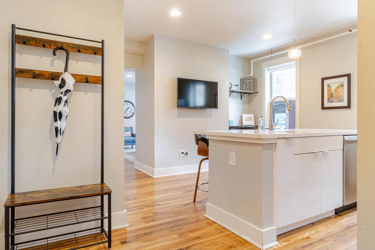 ¡Bienvenido a este nuevo apartamento en el corazón de OTR! Disfruta de un alto estilo y comodidad en una ubicación inmejorable. Camina a todos los restaurantes, bares/cervecerías, tiendas y entretenimiento, ¡todo a solo unos pasos de distancia! A 3 manzanas del estadio TQL, a 1,3 millas de los estadios Reds y Bengals. A 1 manzana del Washington Park y Music Hall. La parada del tranvía (GRATUITO) está a pocos pasos con un circuito de 3,6 millas a los principales centros de empleo, entretenimiento y negocios. Aparcamiento público muy cerca si es necesario.
