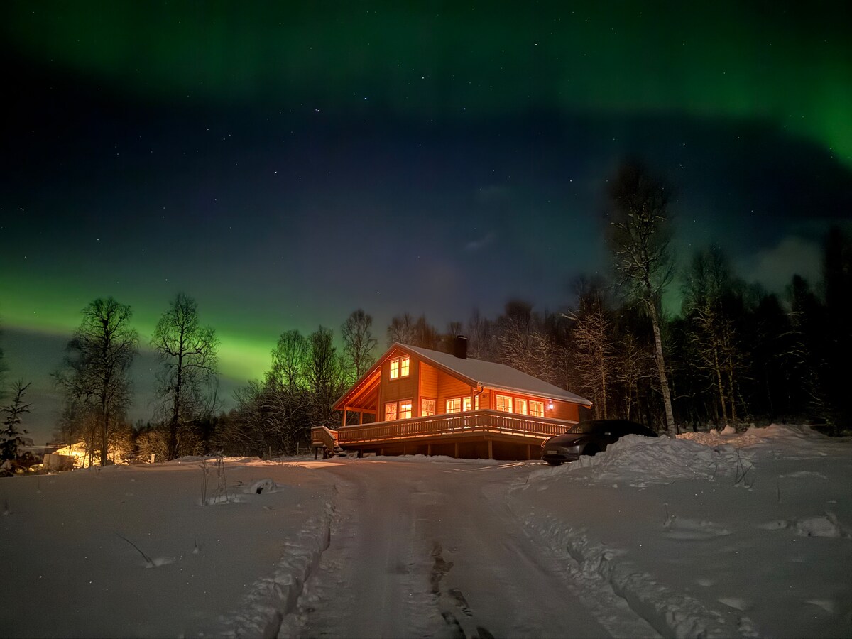 Cabaña junto al lago con vistas increíbles a la aurora boreal