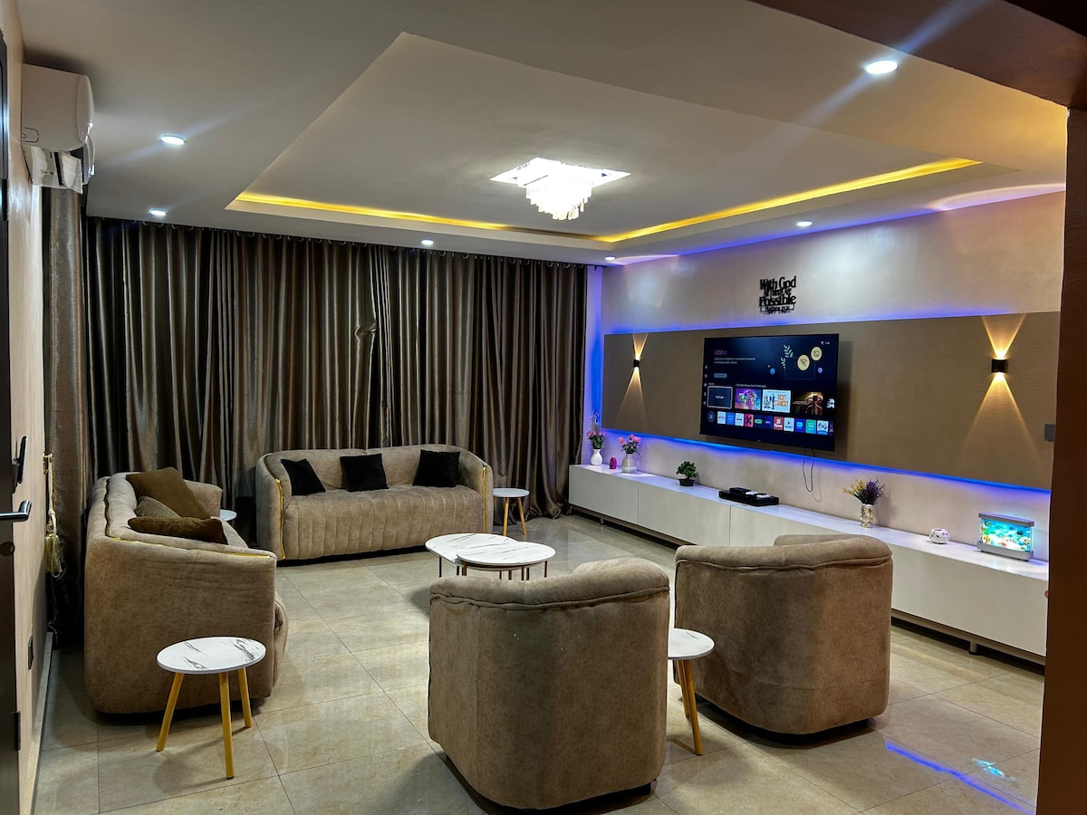 Enjoy a refreshing and comfortable stay at Linques & Bethel Apartments, your cosy, modern home away from home. Our beautifully furnished space features plush bedding, a fully equipped kitchen, smart TV, fast WiFi, and a relaxing ambience for both short and long stays. Located in a serene neighbourhood with easy access to shops and major roads, it’s ideal for business travellers, couples, and families. The property is secured with 24/7 surveillance and gated access. Book your stay today!