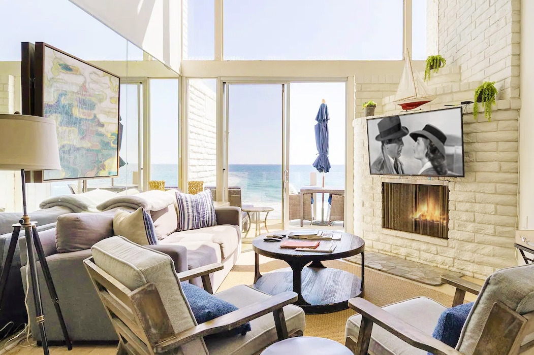 Remodelación completa 11/2025. Visto en LA-RE Influencers. Votado como el MEJOR condominio de Malibú 2025. Escalera privada a 2 pies de la puerta principal a mi playa privada. Condominio frente al mar con 1 dormitorio y 1 baño con vistas frontales y laterales al mar desde todas las habitaciones. Refrigerador subzero, Wolf Dual Fuel Range, Lavavajillas Bosch, piso de baño climatizado, ducha de efecto lluvia con iluminación ambiental. Televisión LED de 86pulgadas en la sala de estar. Sofá cama en la sala de estar para acomodar a niños o invitados. Es posible que se permitan perros pequeños con una tarifa por mascotas, pero DEBEN ser aprobados por el propietario.