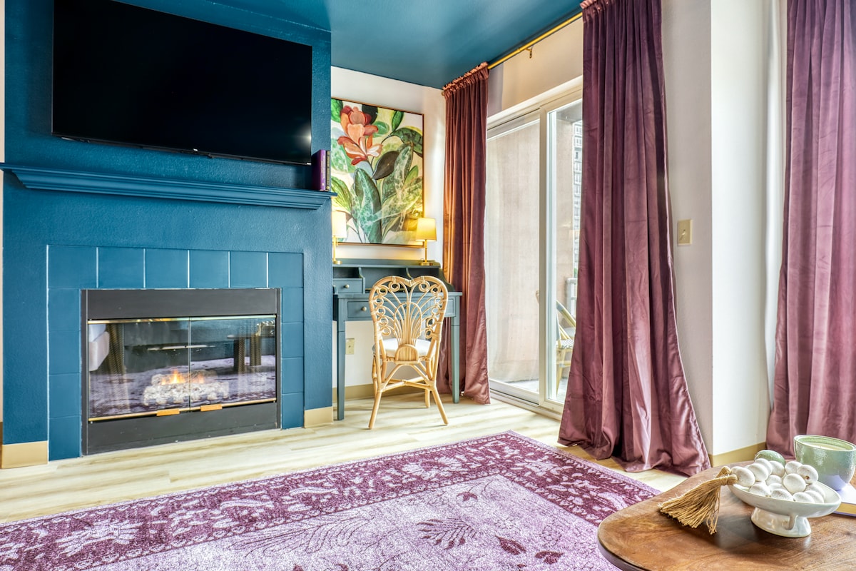 Mantente caliente junto al fuego, ya sea en los asientos incorporados alrededor de la hoguera o en el interior, en el sofá modular junto a la chimenea de gas lineal debajo del marco de TV Samsung. También en el interior hay ventanas del suelo al techo, calefacción por suelo radiante y detalles de vigas a la vista. El apartamento cuenta con una impresionante sala de estar de planta abierta con una cocina bien equipada, además de dos baños con una lujosa ducha de efecto lluvia.