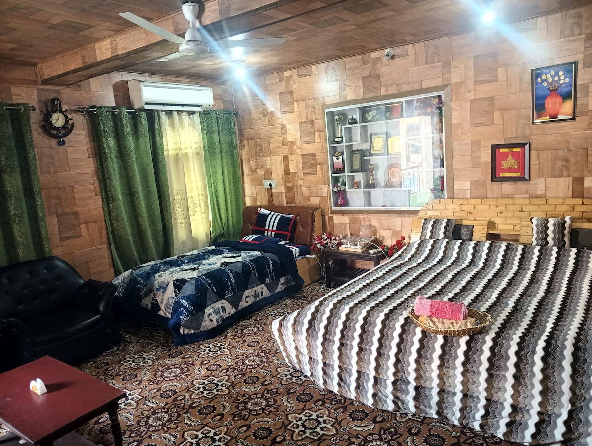 1. Accommodation Details: One booking consists of: -1 Bedroom(Private) -1 Change/Luggage Room(Private) -1 Living Room(Private) -Lobby(Private) -Personel Kitchen (Extra charges) 2. Location: -50m away from Dal Lake -50m away from Dalgate market 3. Nearby Amenities: -ATM, bank and Hospital -Food outlets, especially veg options: -Krishna Dhaba -Gulab -Local dhabas. 4. Transportation: -Local transport available at the doorstep for various destinations incl Mughal Gardens, Lal Chowk etc.