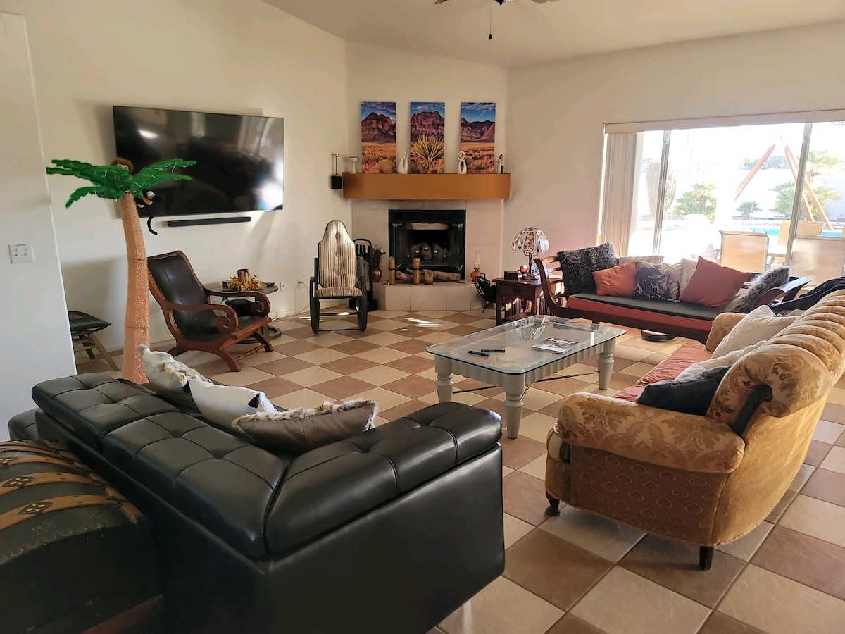 Enjoy my peaceful, roomy, centrally located home as your base to explore Southern Nevada and beyond. Or just simply come & stay to visit friends & family while enjoying all the comforts of your own home. Desirable features include a fully equipped kitchen, washer & dryer, an extra-large covered patio w/barbecue grill, & much more. Cap off a busy day of activities & enjoy star gazing around the fire pit area on this one-acre site.