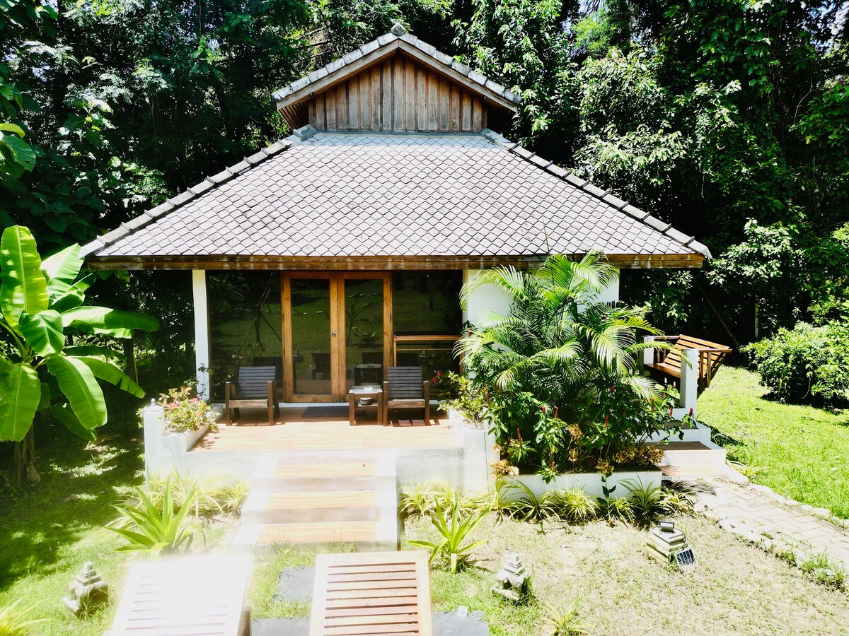 House with great view, working desk, 1 queen size bed, 1 sofa bed (for max 2 kids, or 1 extra adult or just to relax) Kitchen is on ground floor & bathroom is outside directly adjacent to the house. The House is directly next to a beautiful small stream & the Saturday market park with huge playground. Surrounded also by many cafe's, restaurants, Yoga Centers & co-workings. The night market at the famous walking street is only a 10 minute walk.