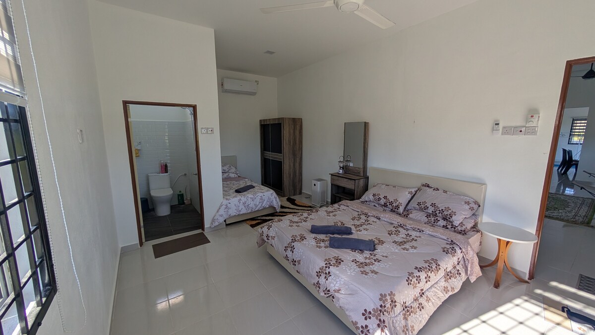 Relax with the whole family at this peaceful place to stay. Rumah amnie - 1 bilik & 1 ruang tamu * sesuai utk 2-5 org * rumah berkembar * 1 bilik (1 queen bed) * sofa bed * extra tilam * 2 aircond * wifi 100mbps + android tv * ada connecting door jika booking 2 unit sekali (amnie & amanda)